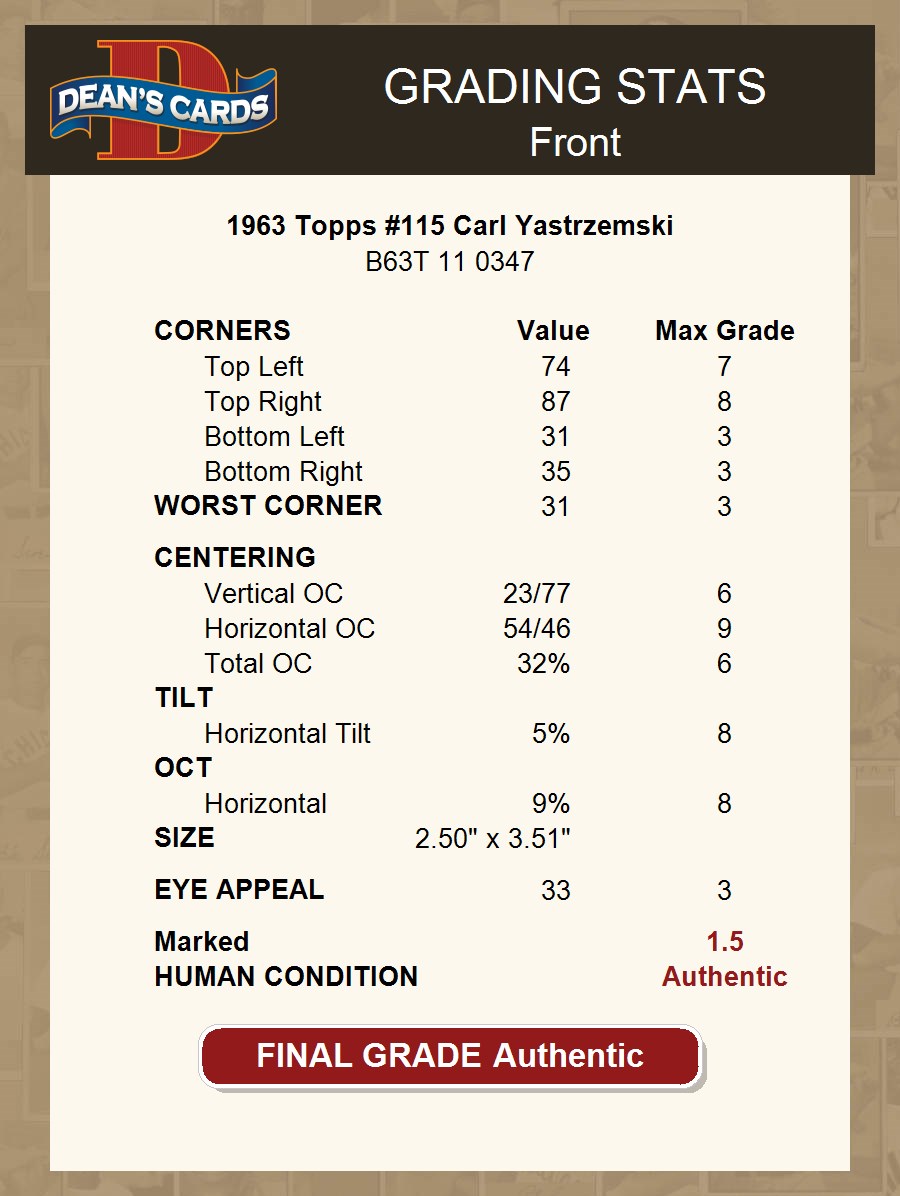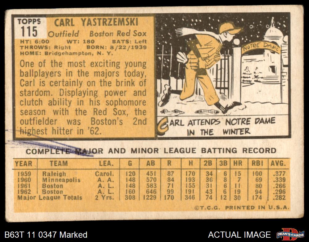 1963 Topps #115 Carl Yastrzemski AUTHENTIC