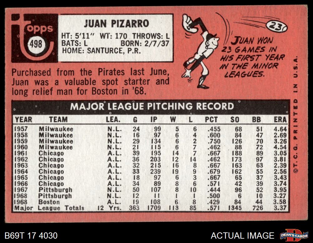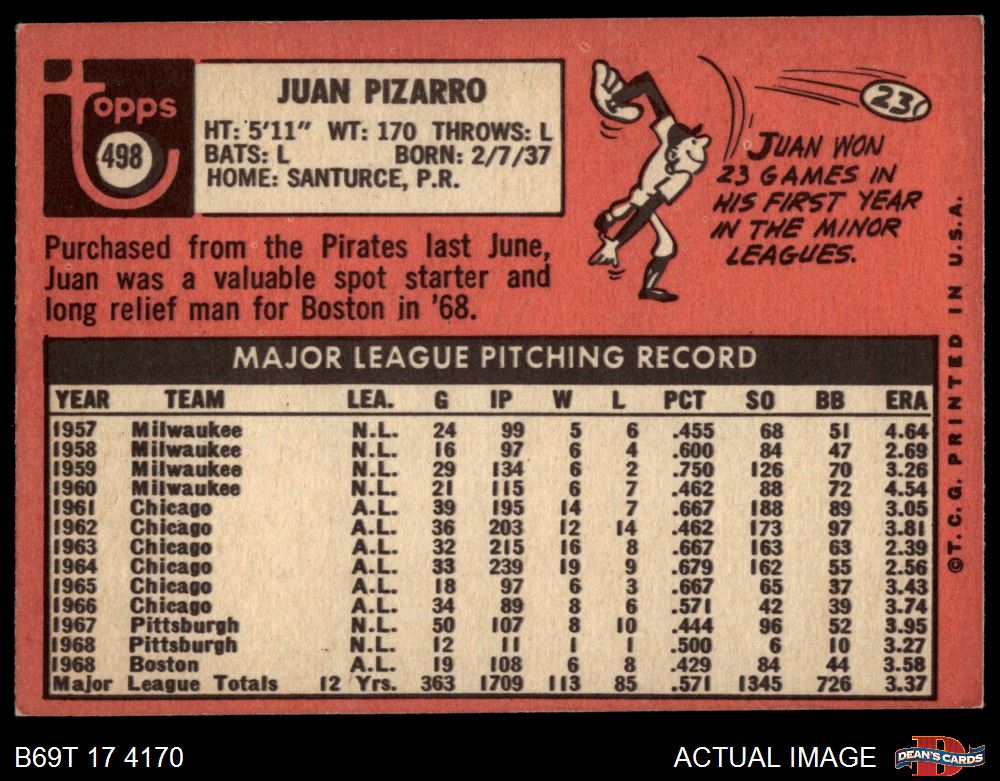 1969 Topps #498 Juan Pizarro 4 - VG/EX
