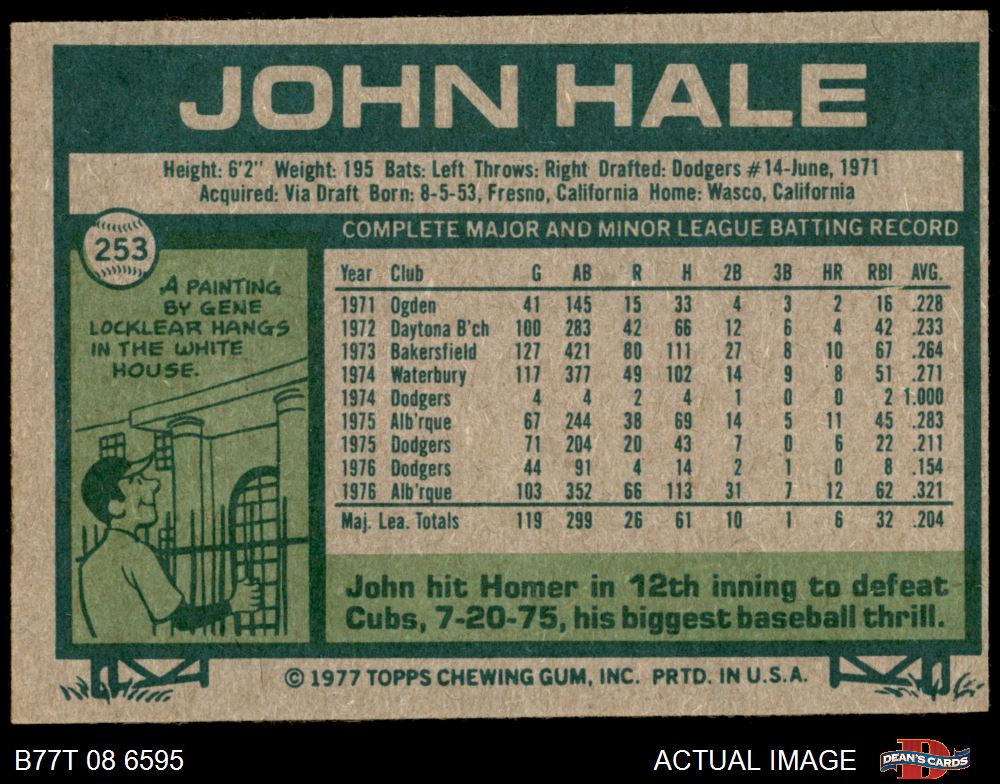 1977 Topps #253 John Hale 4 - VG/EX