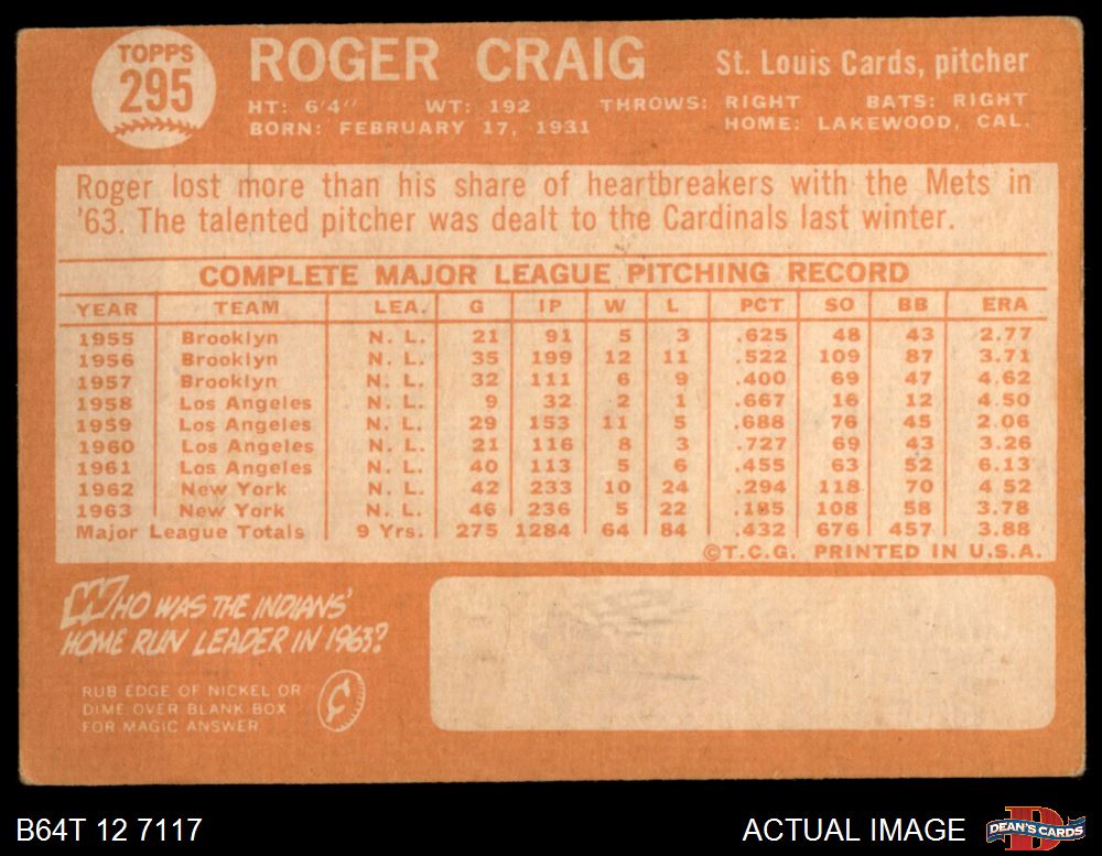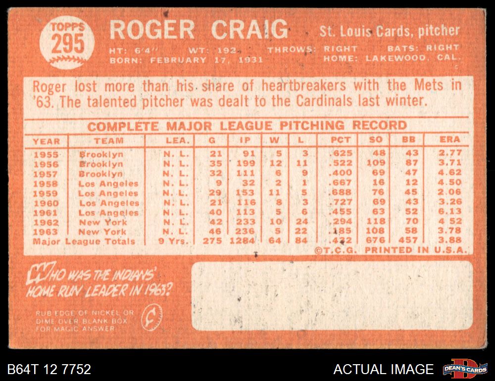 1964 Topps #295 Roger Craig