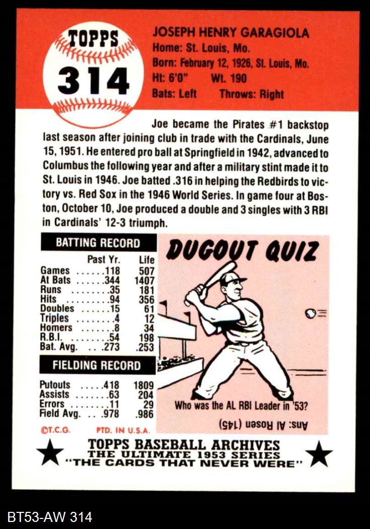 1953 Topps Archives #314 Joe Garagiola 8 - NM/MT