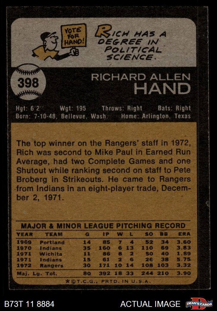 1973 Topps #398 Rich Hand 8 - NM/MT