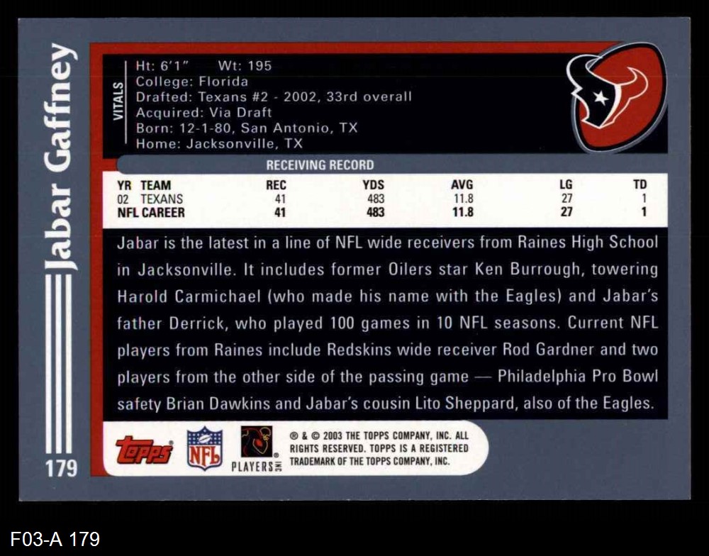 2003 Topps #179 Jabar Gaffney 8 - NM/MT