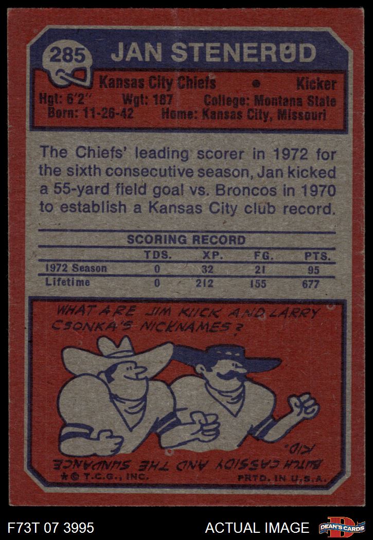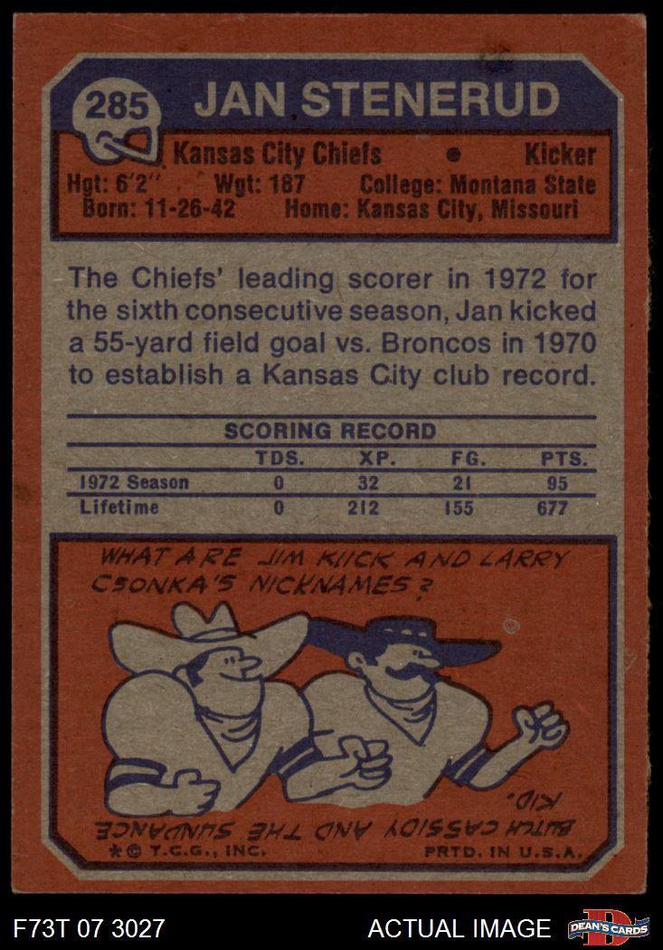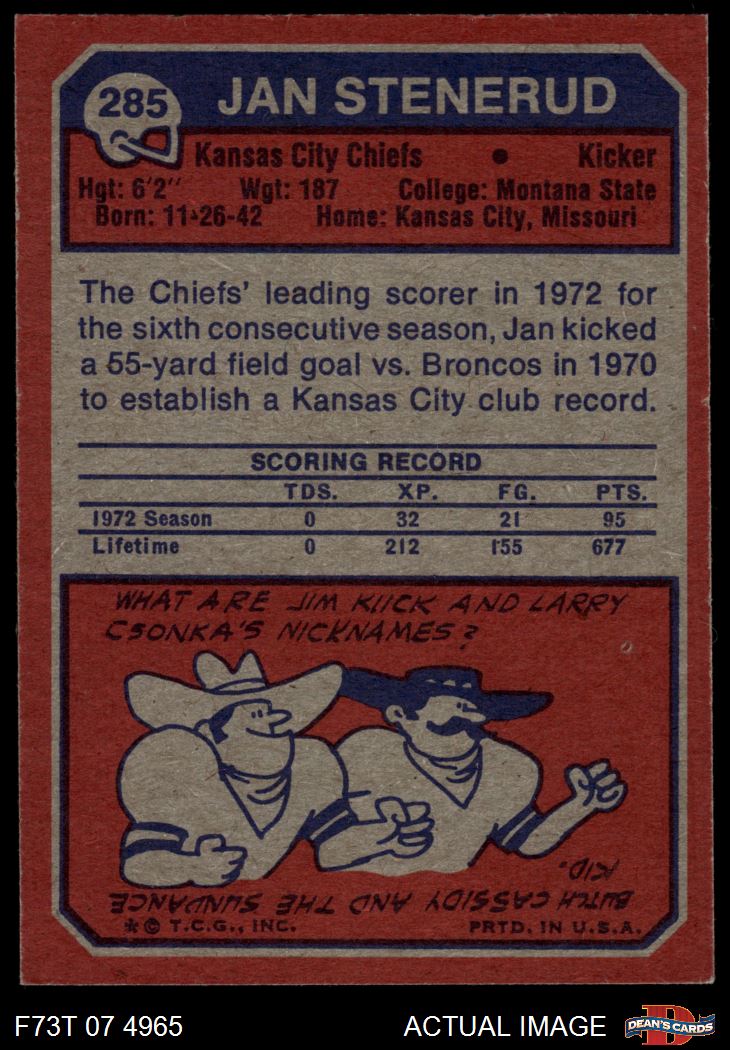 1973 Topps #285 Jan Stenerud