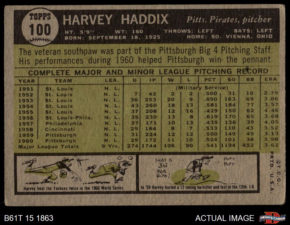 1961 Topps #100 Harvey Haddix 2.5 - GD+