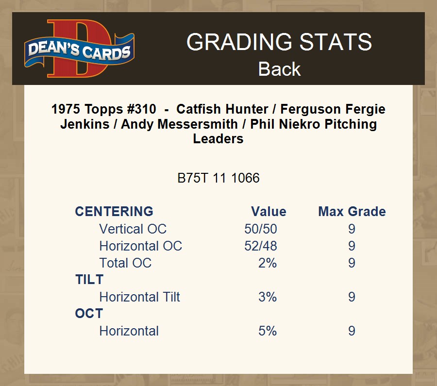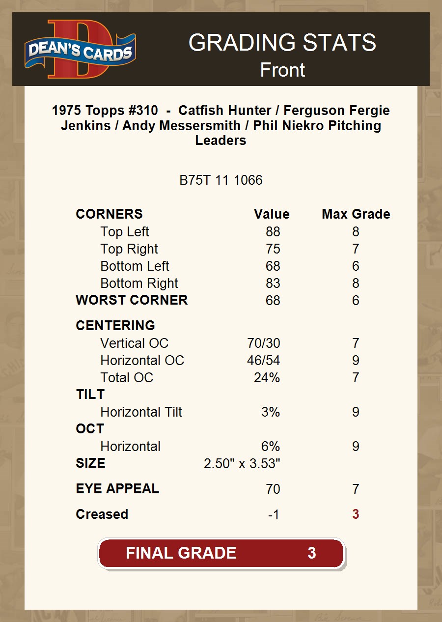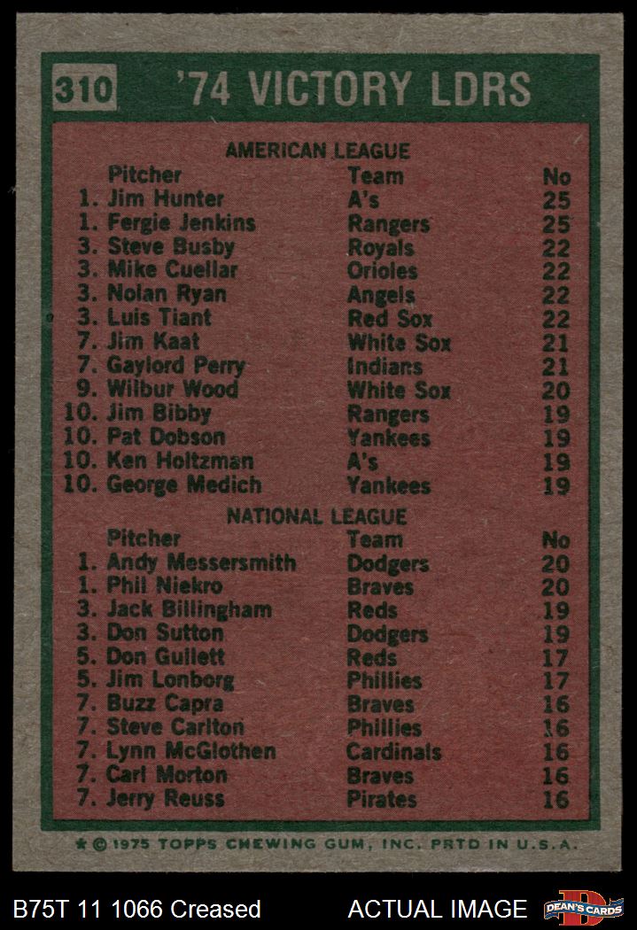 1975 Topps #310 - Catfish Hunter / Ferguson Fergie Jenkins / Andy Messersmith / Phil Niekro Pitching Leaders 3 - VG
