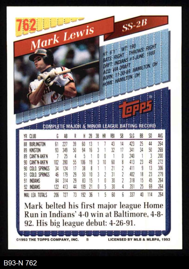1993 Topps #762 Mark Lewis 8 - NM/MT