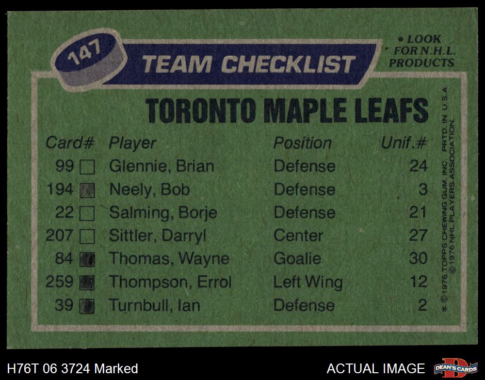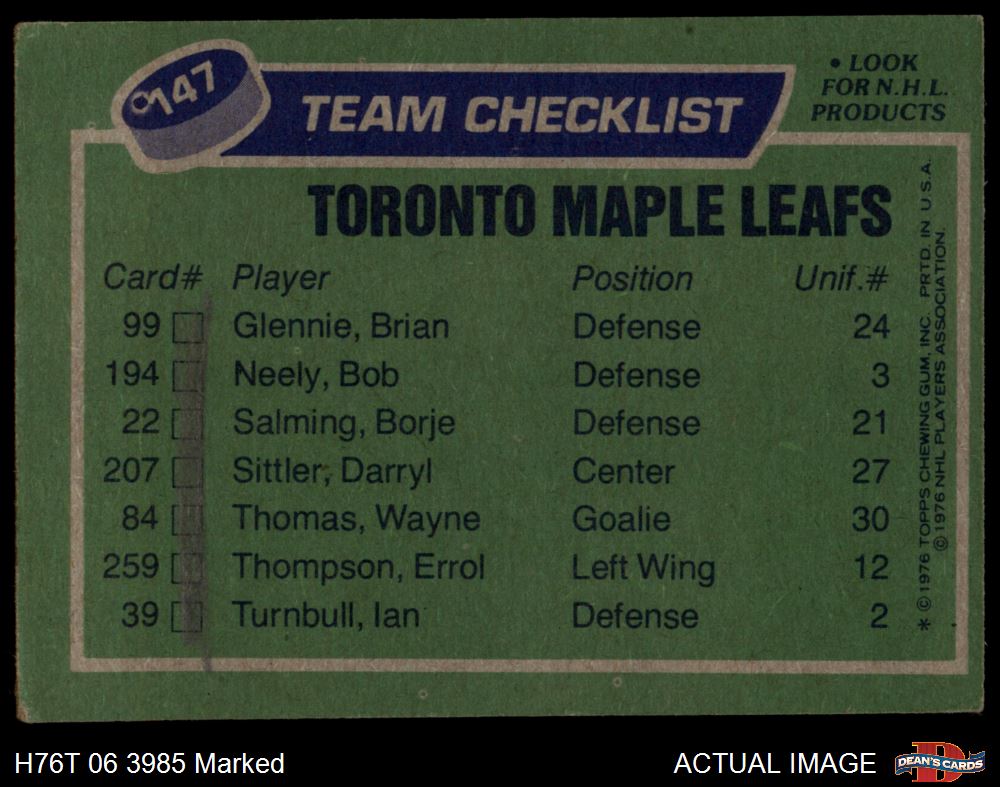 1976 Topps #147 Maple Leafs Team
