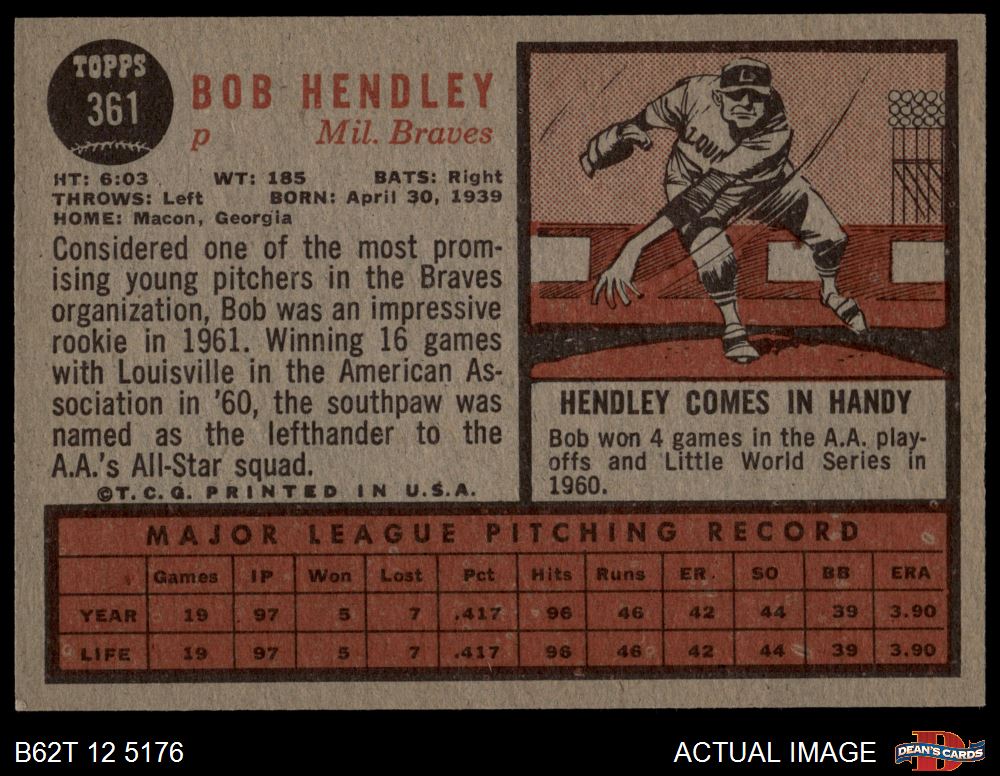 1962 Topps #361 Bob Hendley 4 - VG/EX