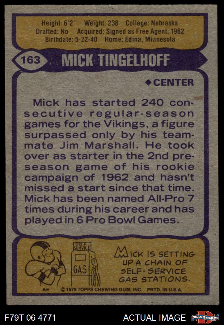 1979 Topps #163 Mick Tingelhoff 2 - GOOD