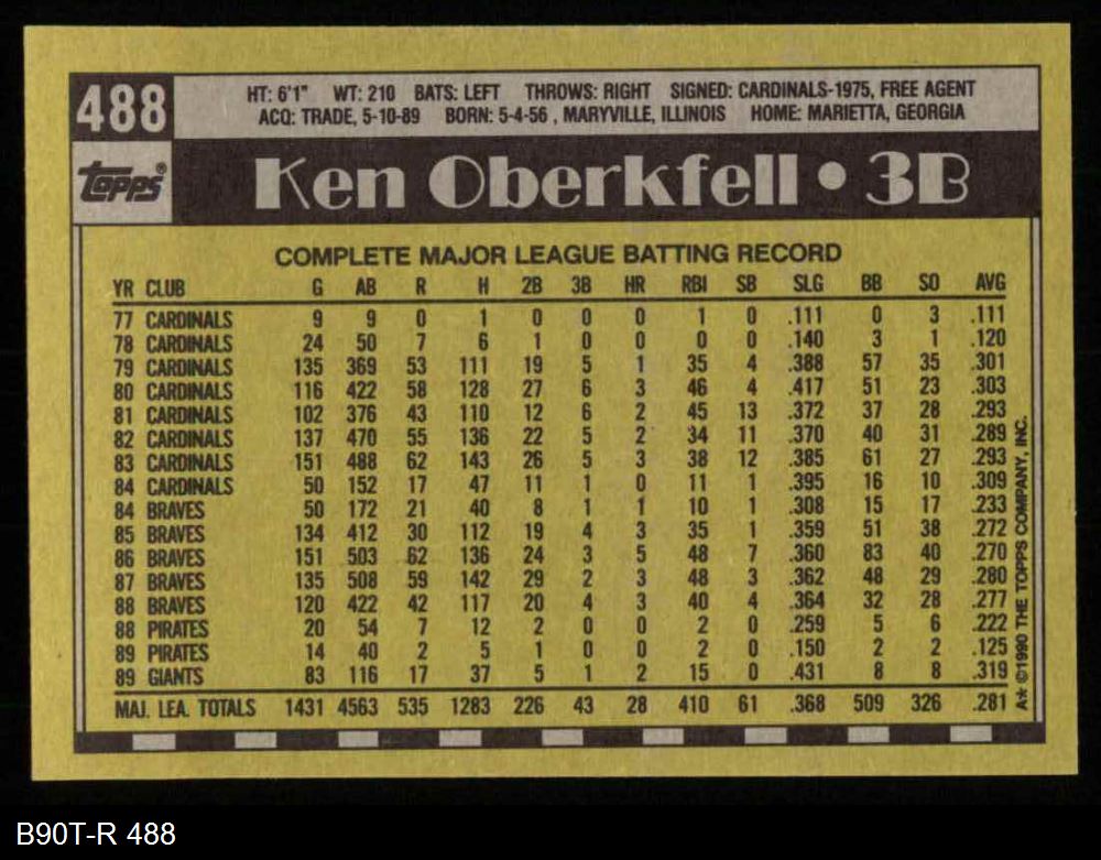 1990 Topps #488 Ken Oberkfell 8 - NM/MT