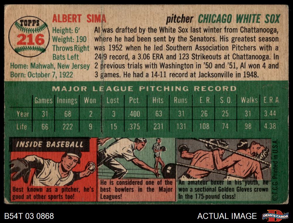 1954 Topps #216 Al Sima 1 - POOR