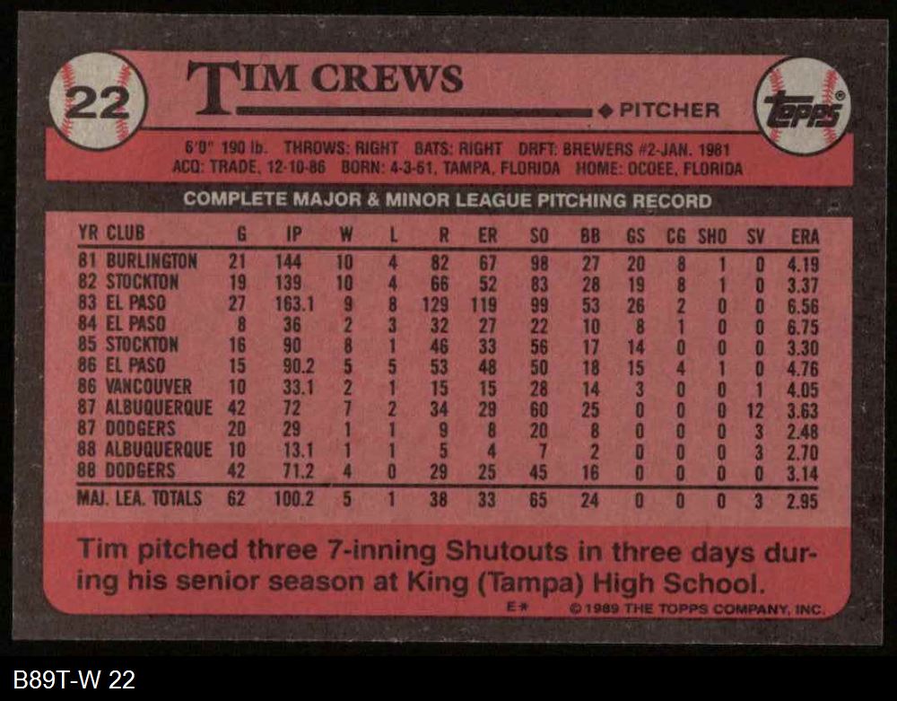 1989 Topps #22 Tim Crews 8 - NM/MT