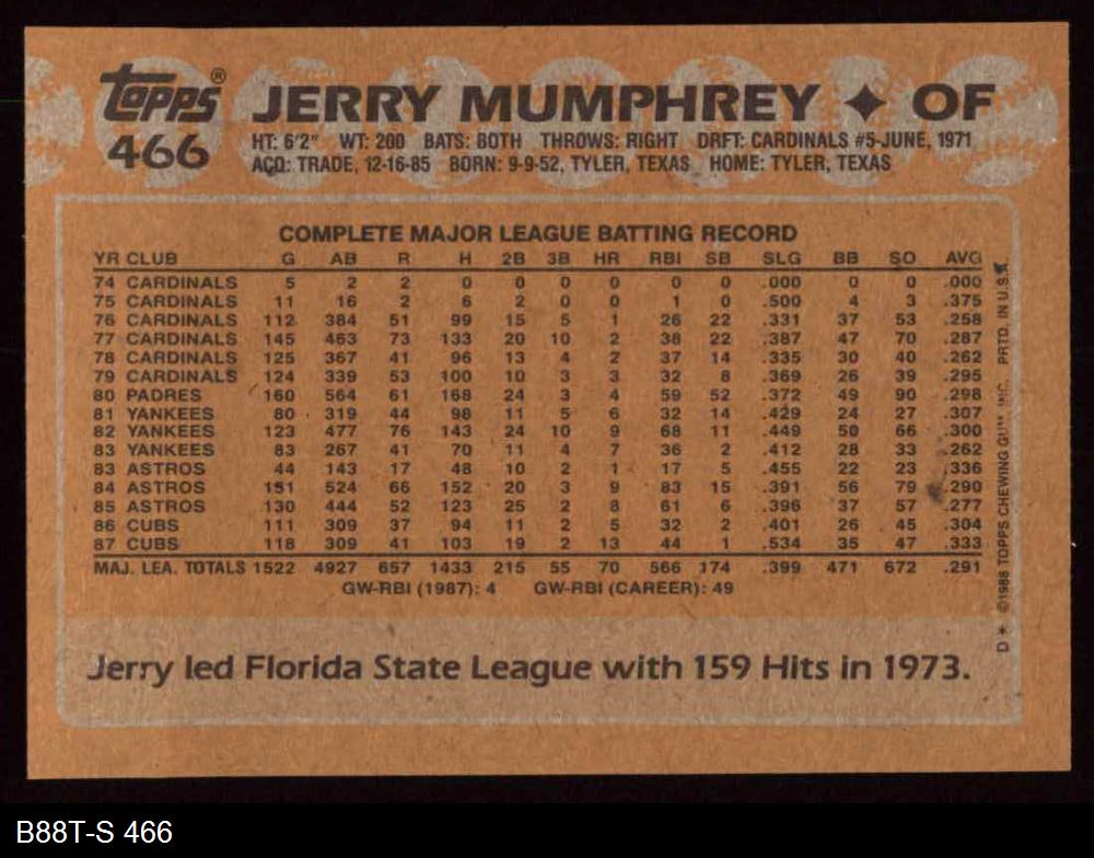 1988 Topps #466 Jerry Mumphrey