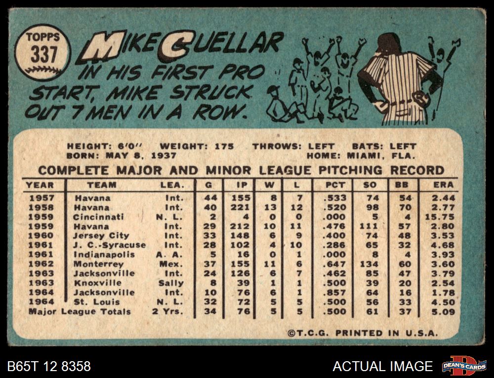 1965 Topps #337 Mike Cuellar 2 - GOOD