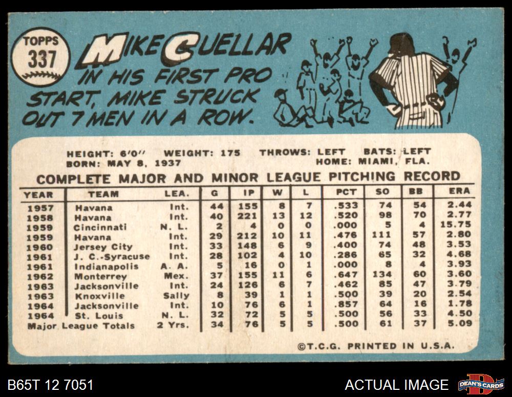 1965 Topps #337 Mike Cuellar 4 - VG/EX