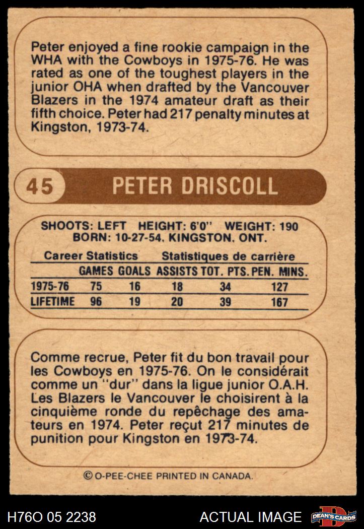 1976 O-Pee-Chee WHA #45 Peter Driscoll 6 - EX/MT