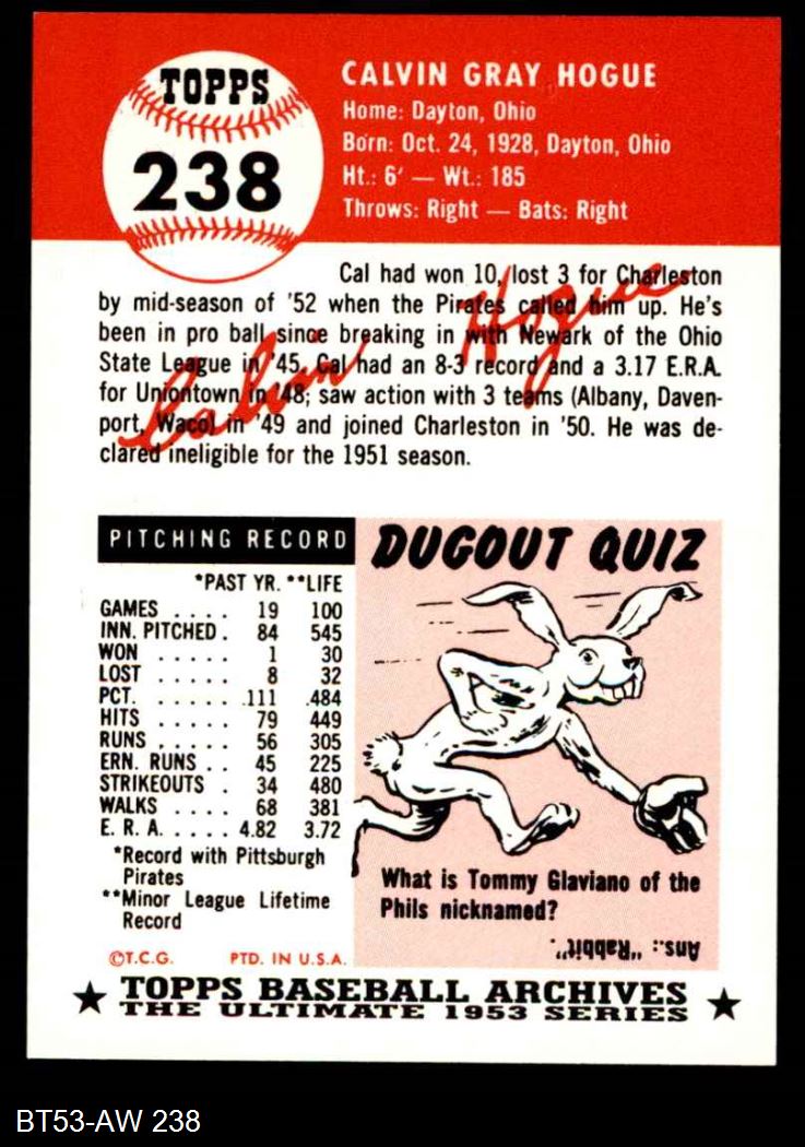 1953 Topps Archives #238 Cal Hogue 8 - NM/MT