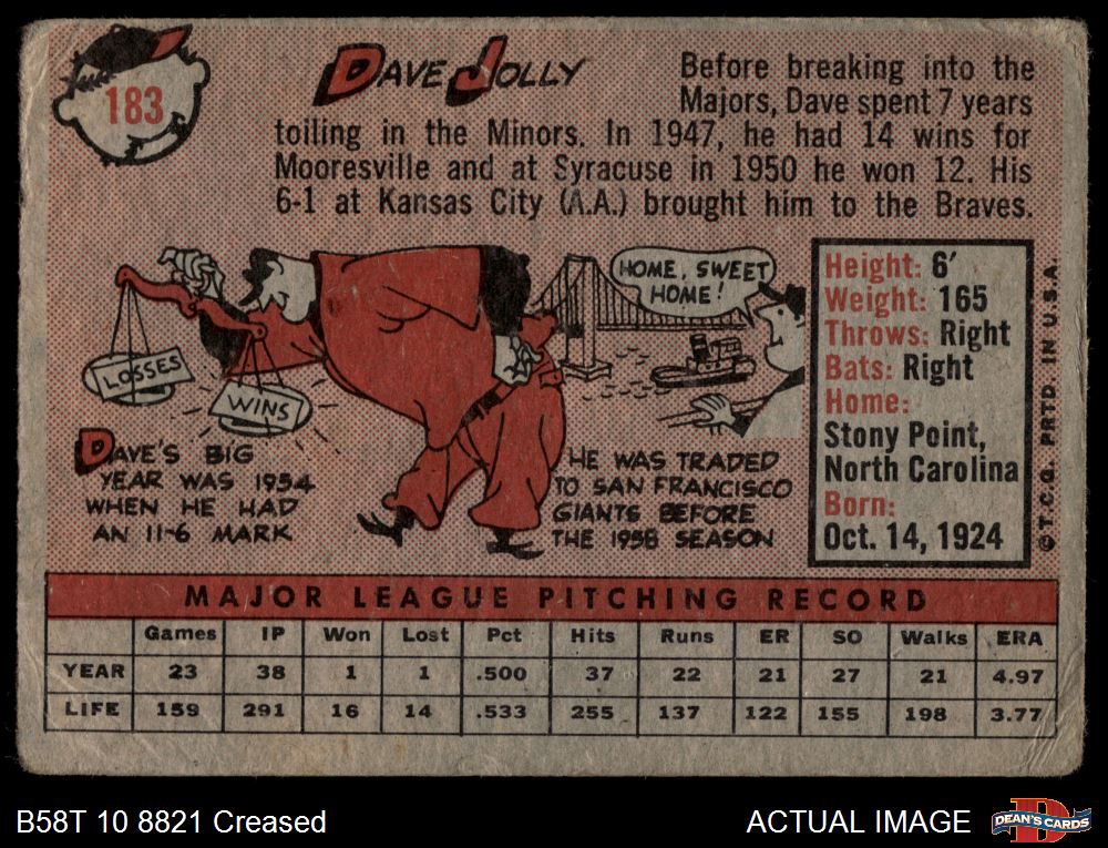 1958 Topps #183 Dave Jolly 1.5 - FAIR
