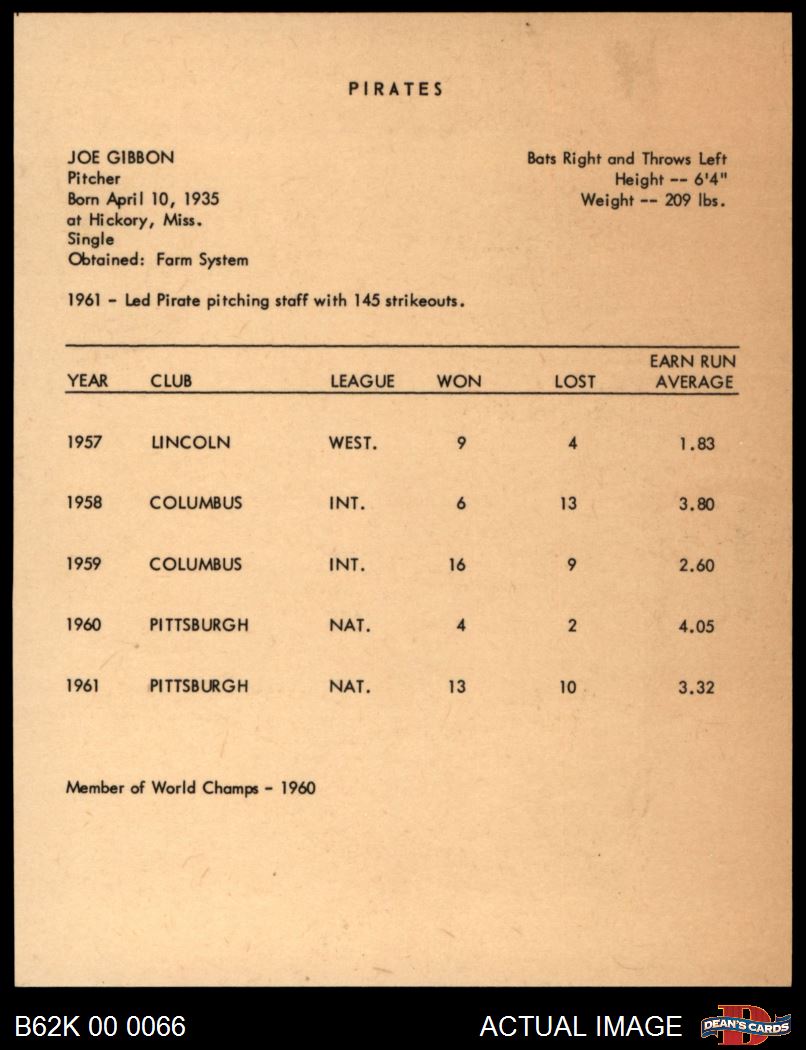 1962 Kahn's Joe Gibbon 4 - VG/EX