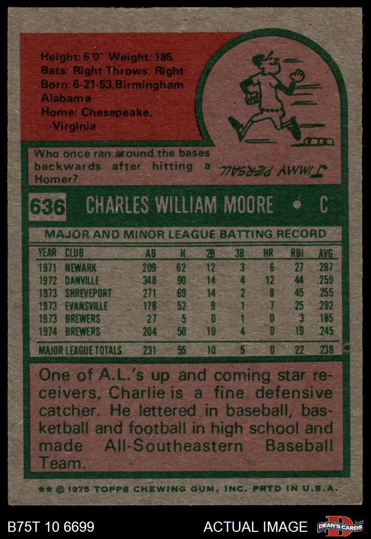 1975 Topps #636 Charlie Moore 5 - EX
