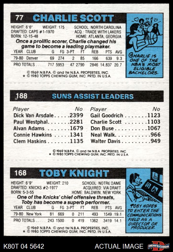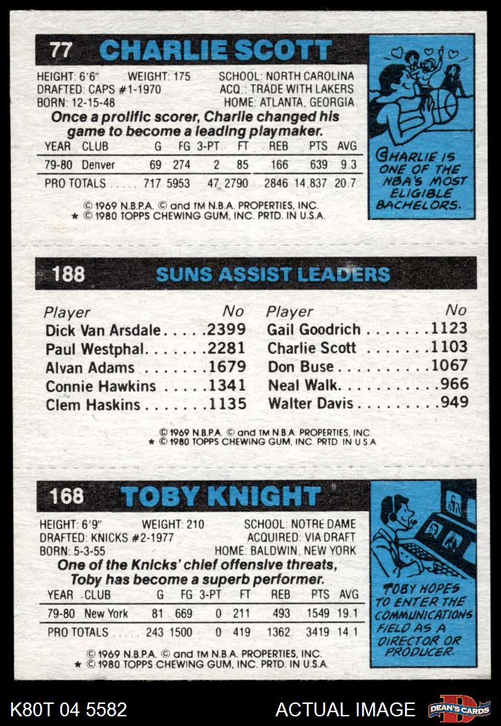 1980 Topps - Toby Knight / Paul Westphal / Charlie Scott 168 / 188 / 77 7 - NM