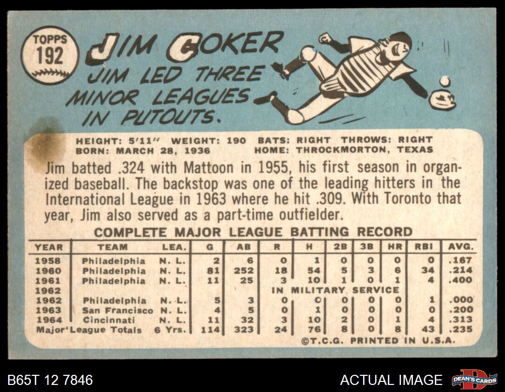 1965 Topps #192 Jim Coker 1.5 - FAIR
