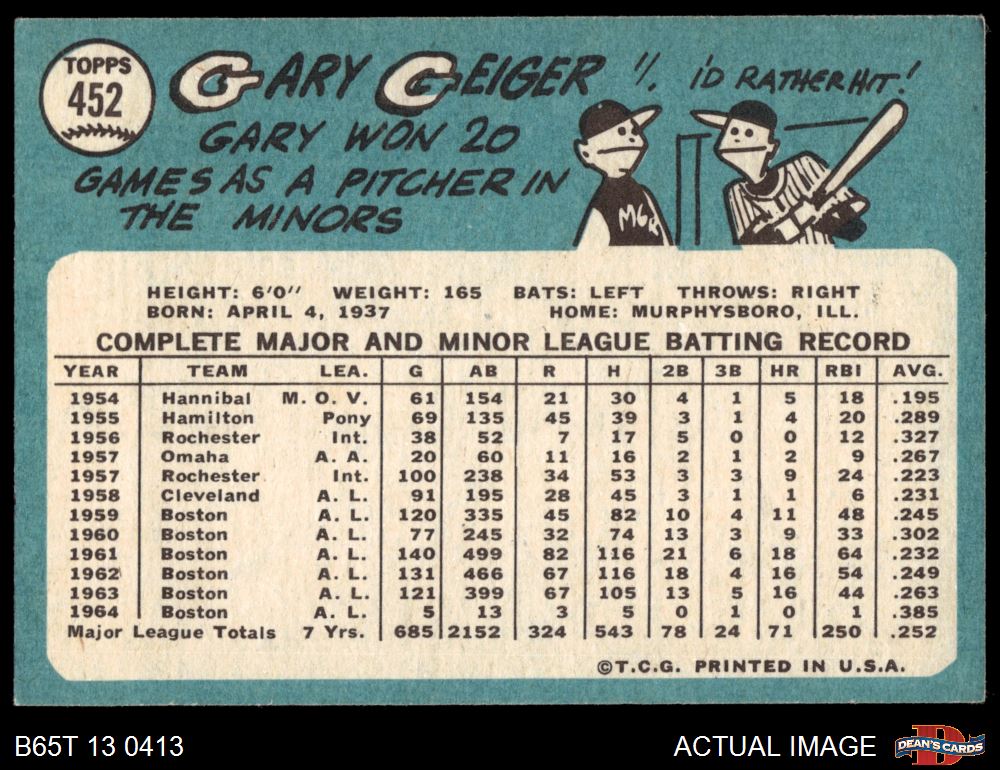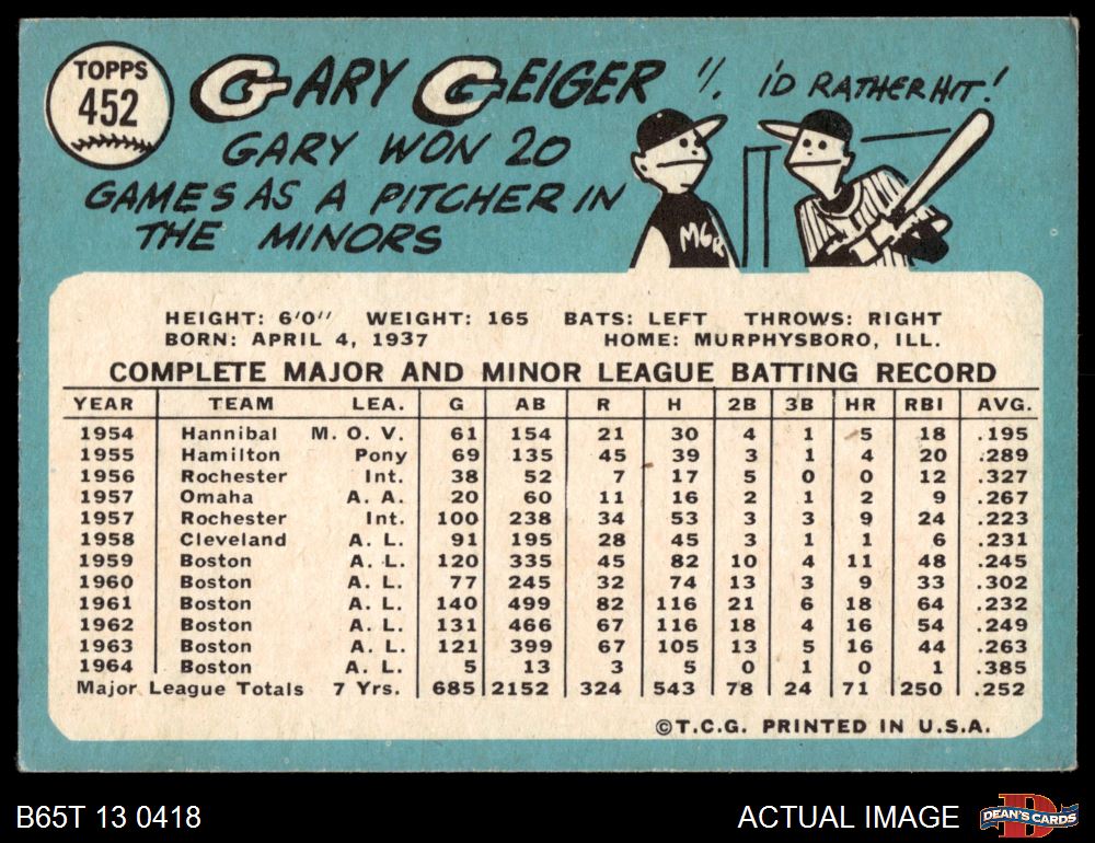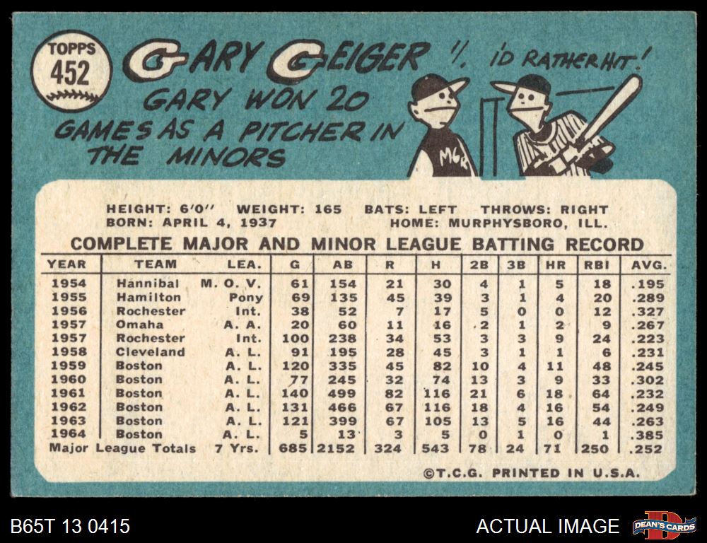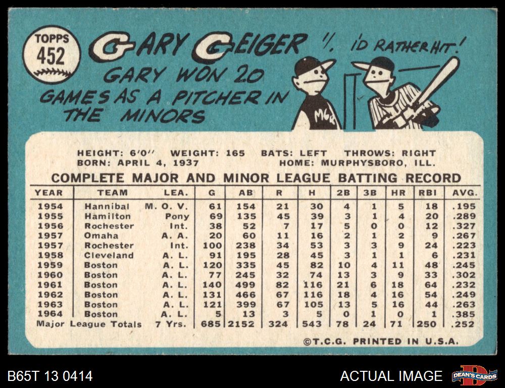 1965 Topps #452 Gary Geiger