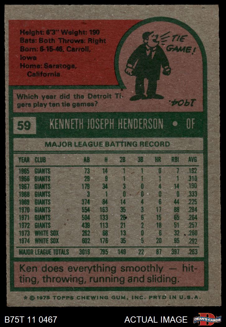 1975 Topps #59 Ken Henderson 5 - EX