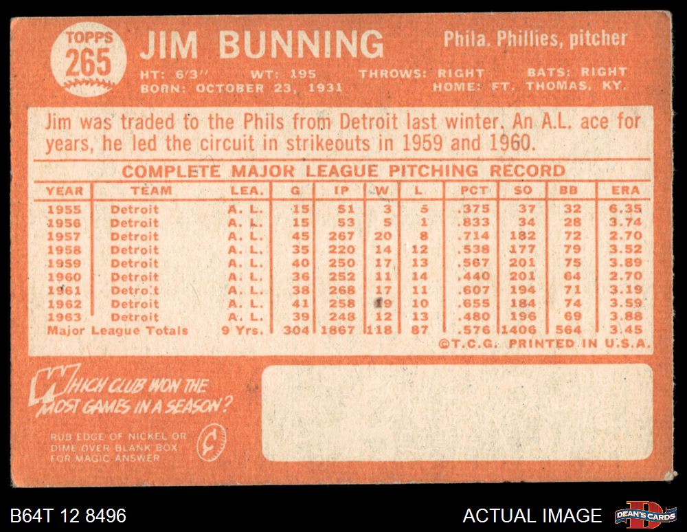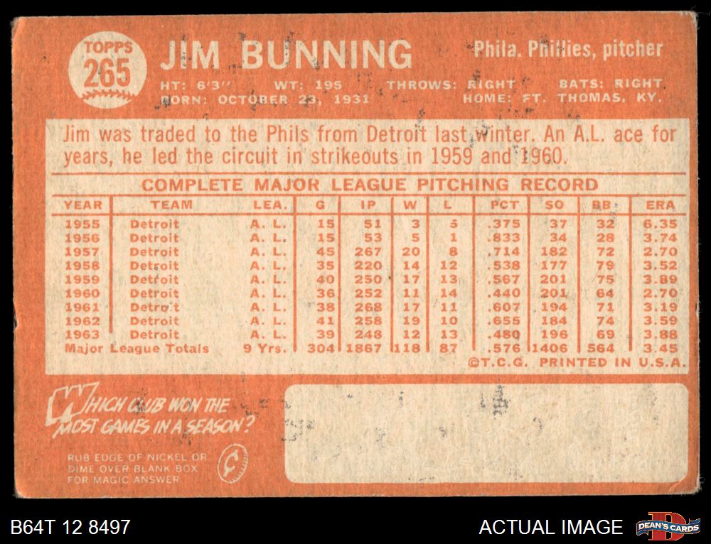 1964 Topps #265 Jim Bunning 2 - GOOD
