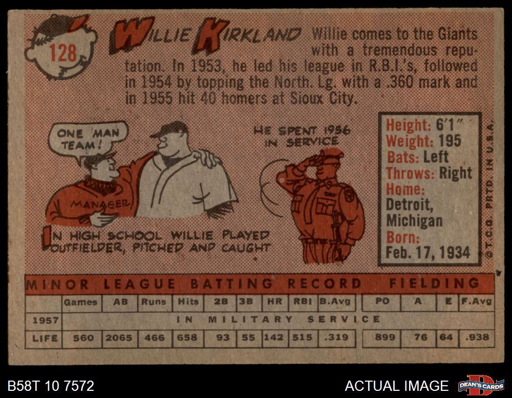 1958 Topps #128 Willie Kirkland 4 - VG/EX