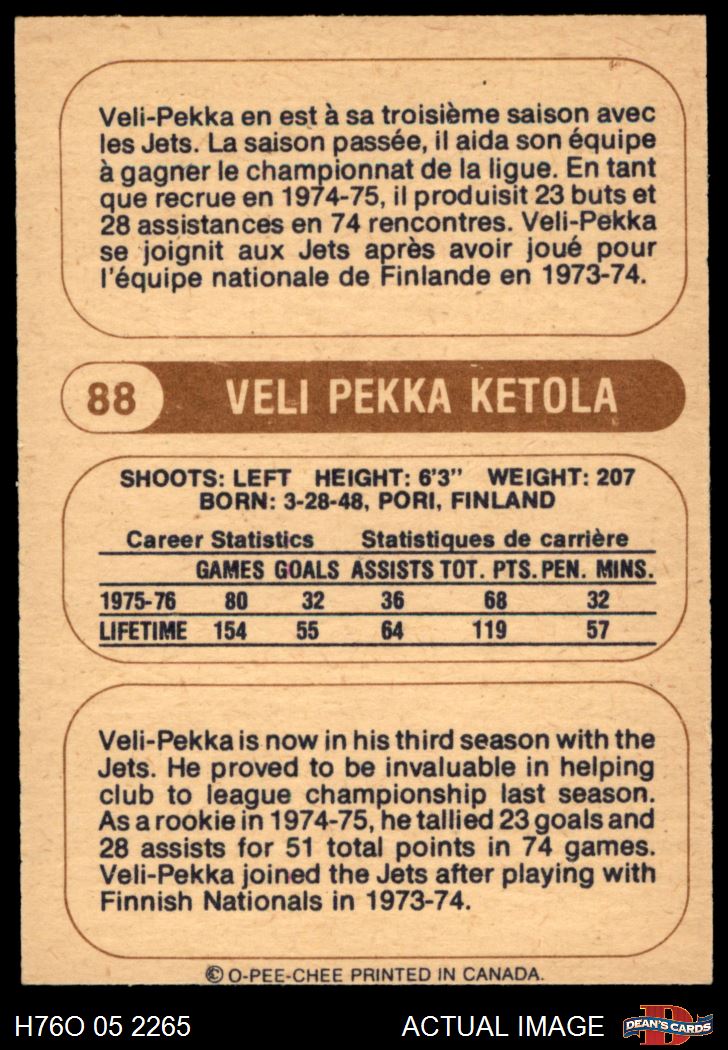 1976 O-Pee-Chee WHA #88 Veli-Pekka Ketola