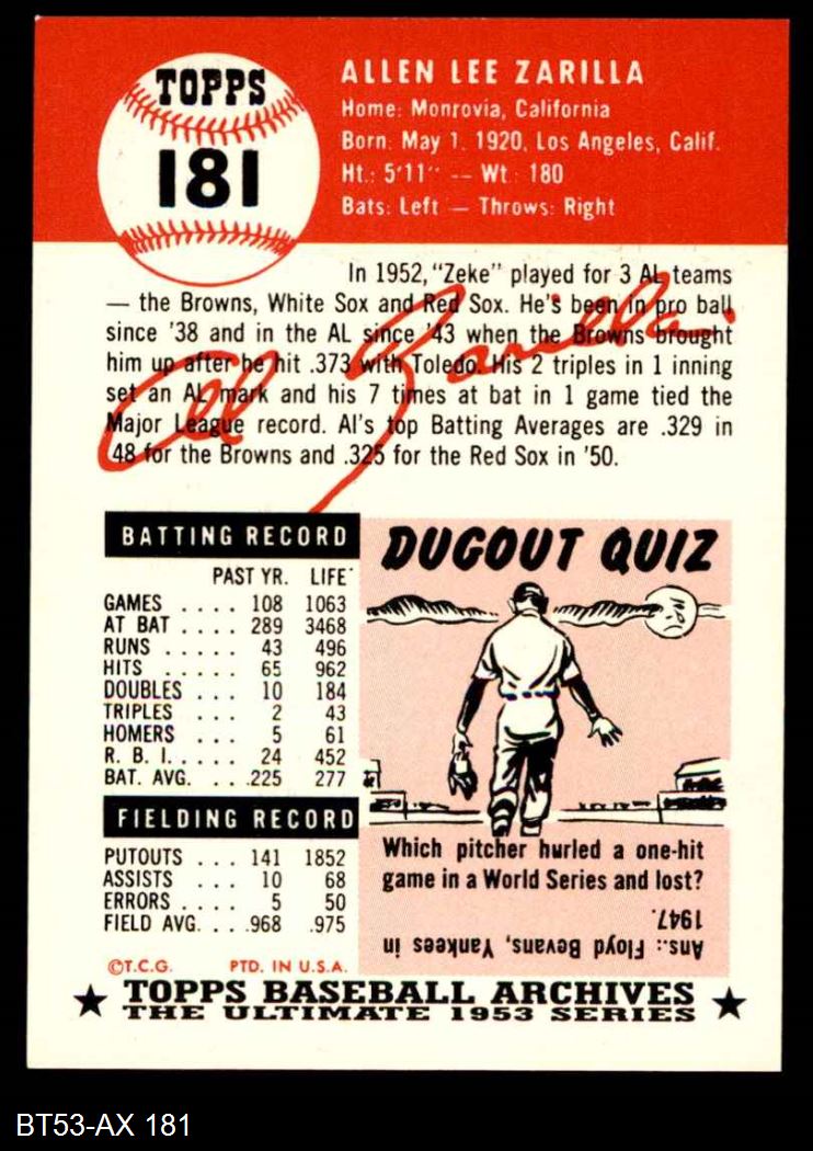 1953 Topps Archives #181 Al Zarilla 8 - NM/MT