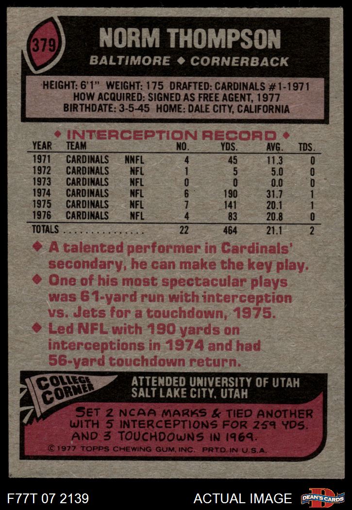 1977 Topps #379 Norm Thompson 5 - EX