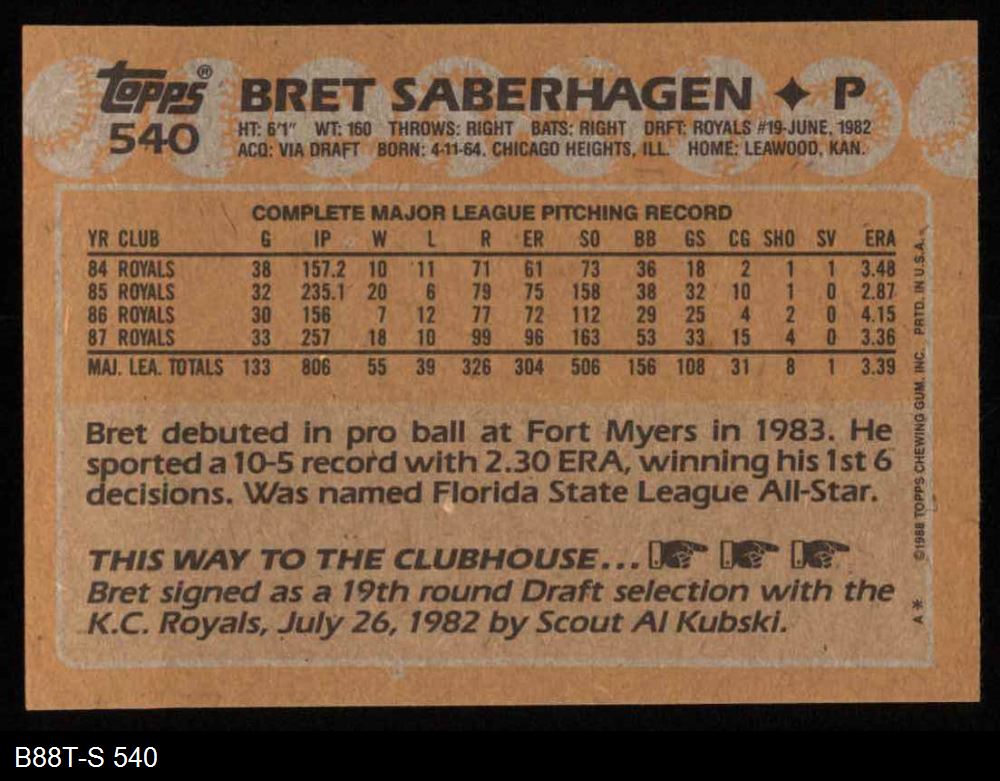 1988 Topps #540 Bret Saberhagen