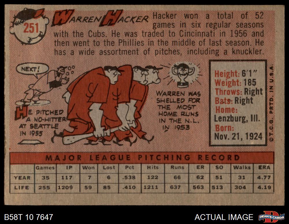 1958 Topps #251 Warren Hacker 5 - EX