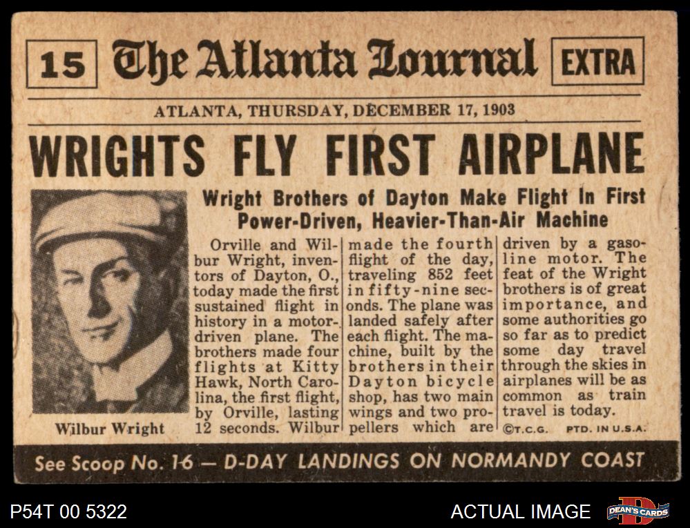1954 Topps Scoop #15 xCOA  First Airplane Flight Front Thumbnail