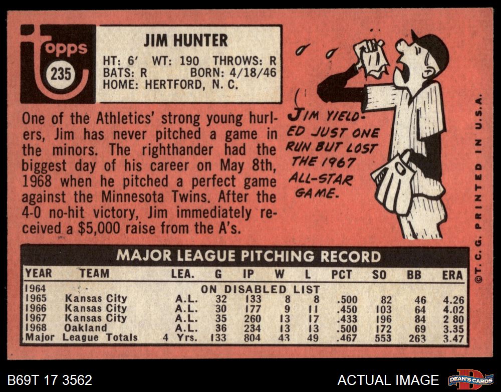 1969 Topps #235 Catfish Hunter 4 - VG/EX