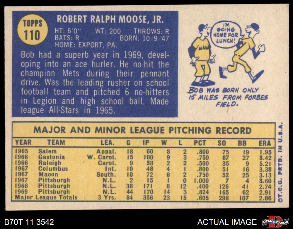 1970 Topps #110 Bob Moose