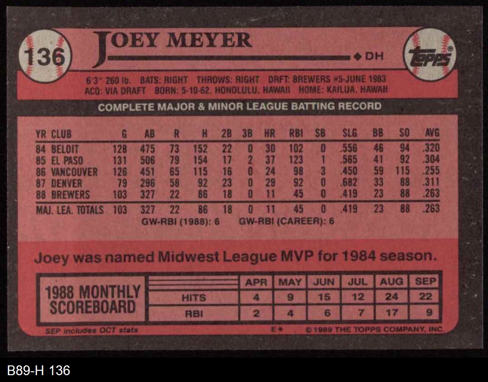 1989 Topps #136 Joey Meyer 8 - NM/MT