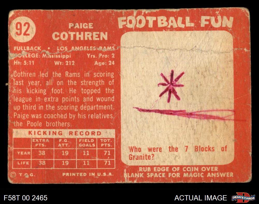 1958 Topps #92 Paige Cothren AUTHENTIC