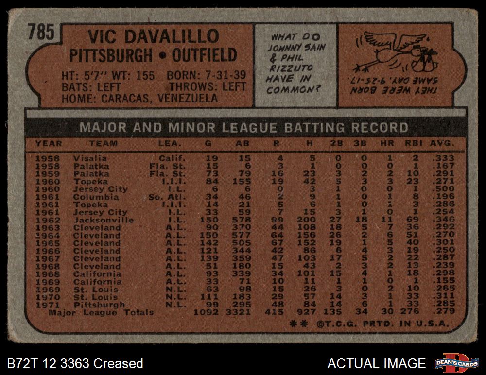 1972 Topps #785 Vic Davalillo 1 - POOR