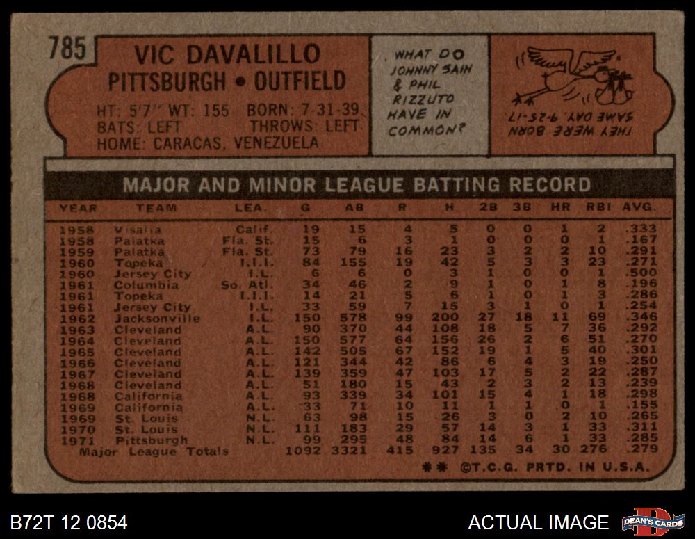 1972 Topps #785 Vic Davalillo Front Thumbnail