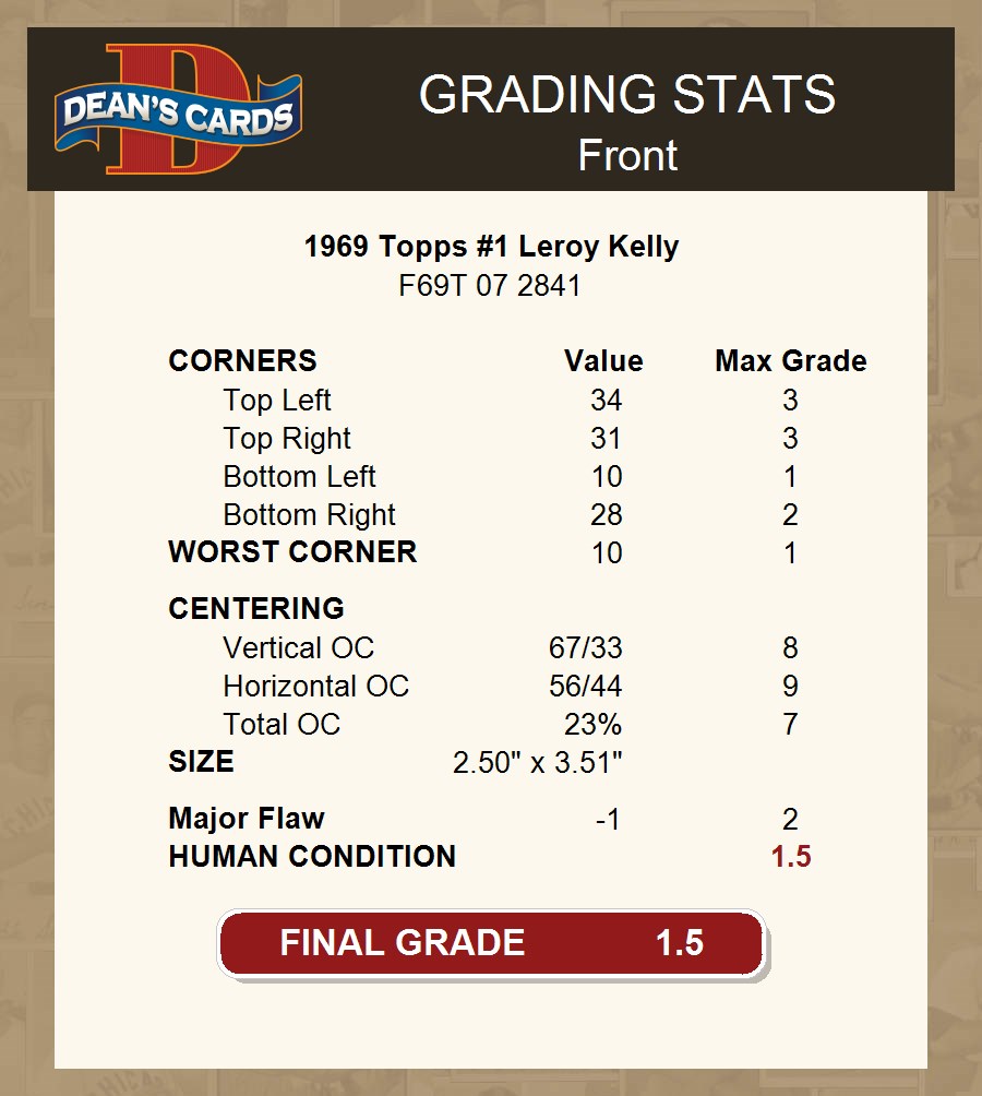 1969 Topps #1 Leroy Kelly 1.5 - FAIR