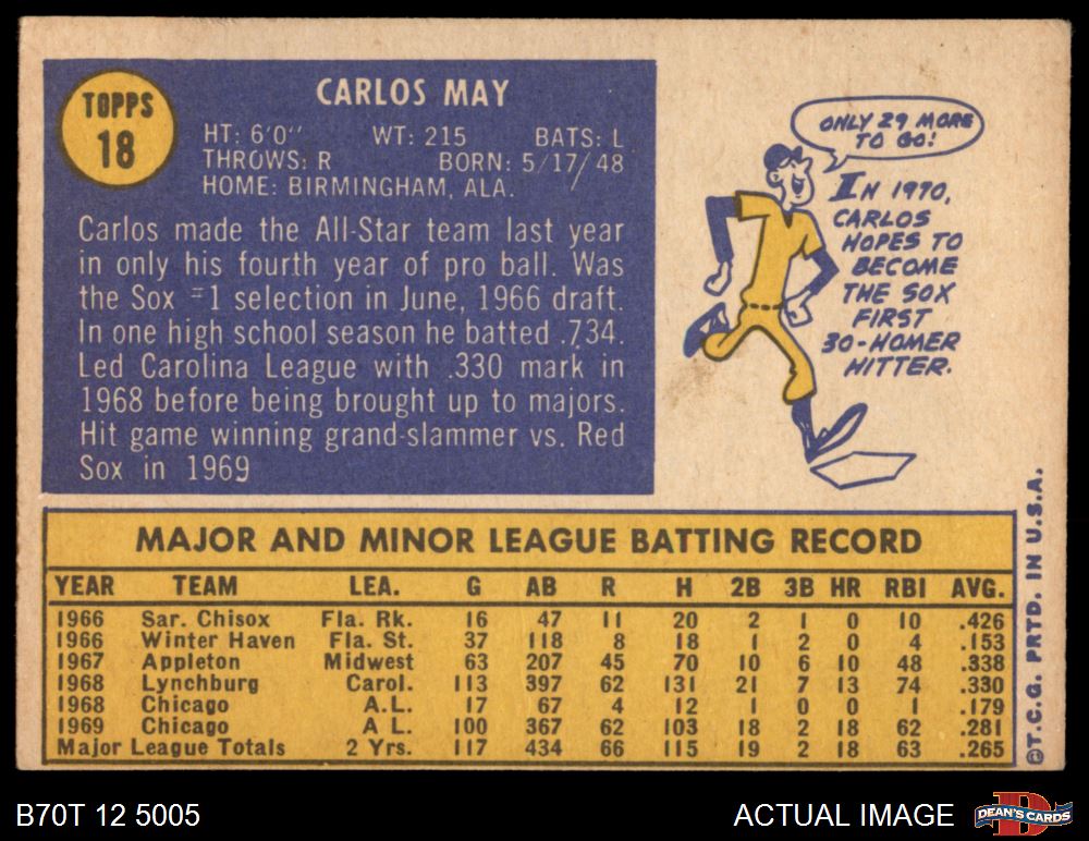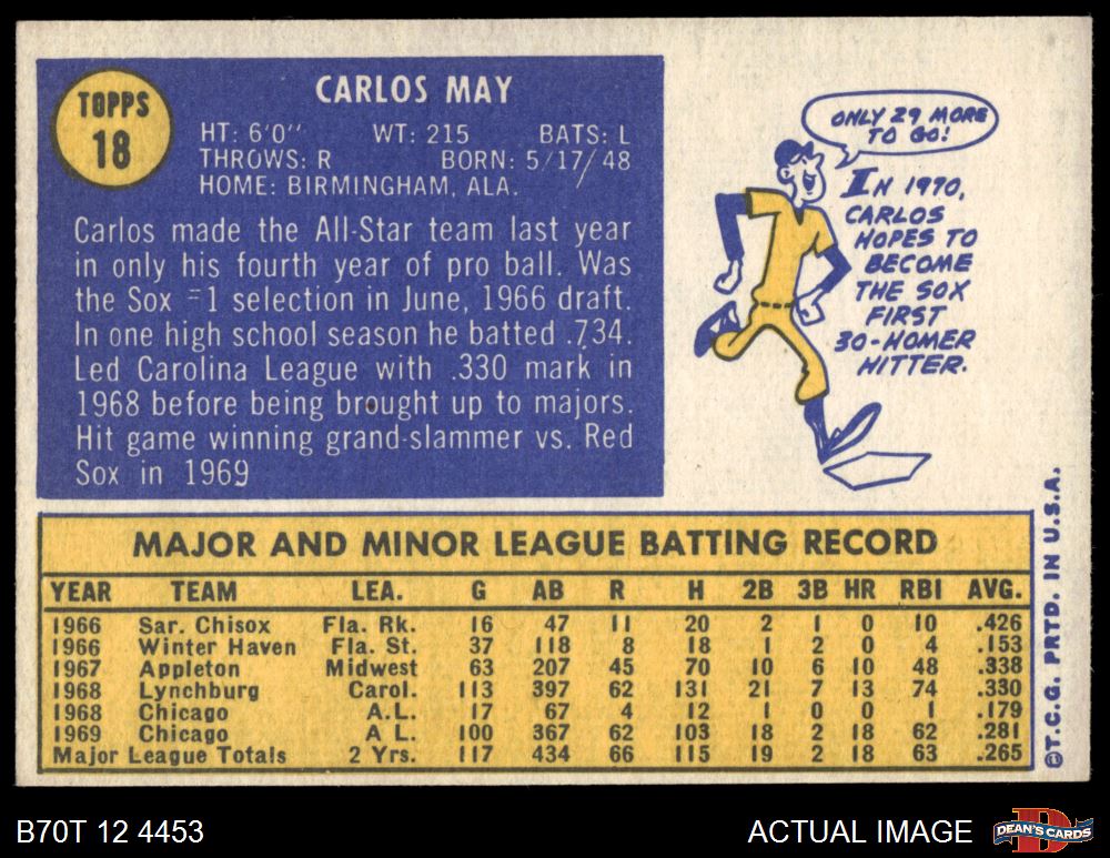 1970 Topps #18 Carlos May 4 - VG/EX