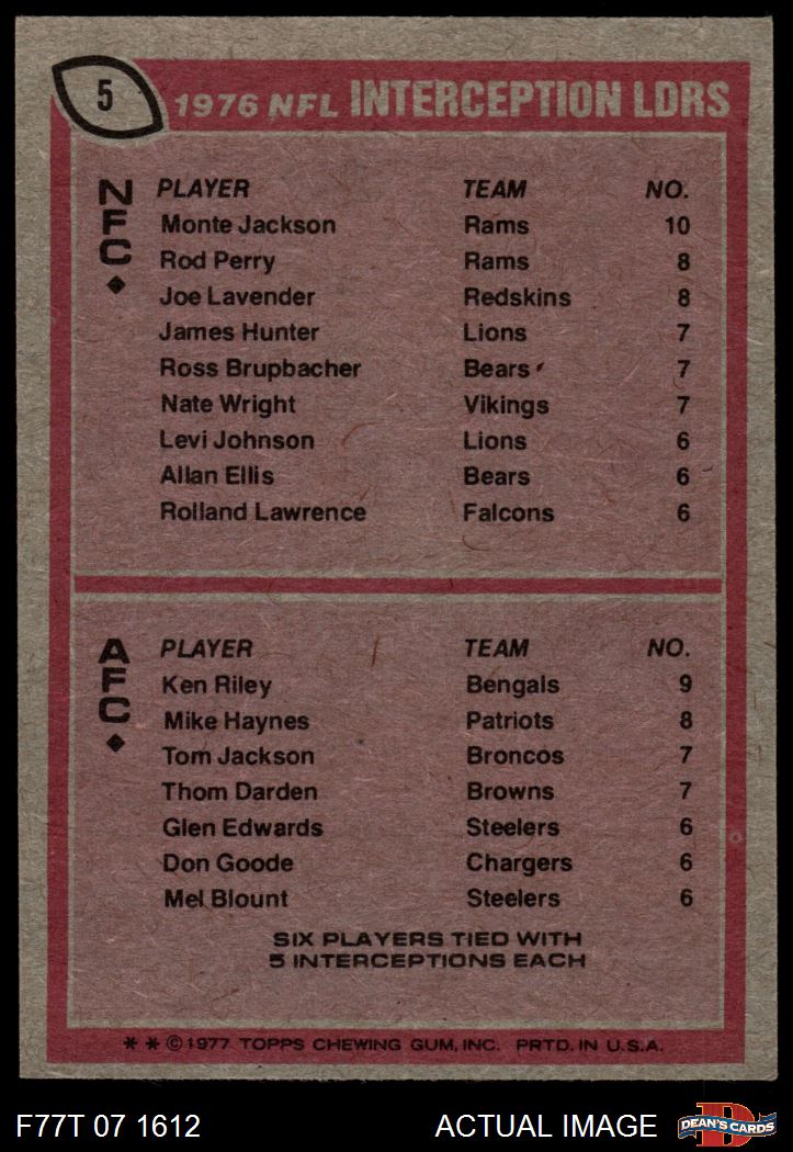 1977 Topps #5 Interception Leaders