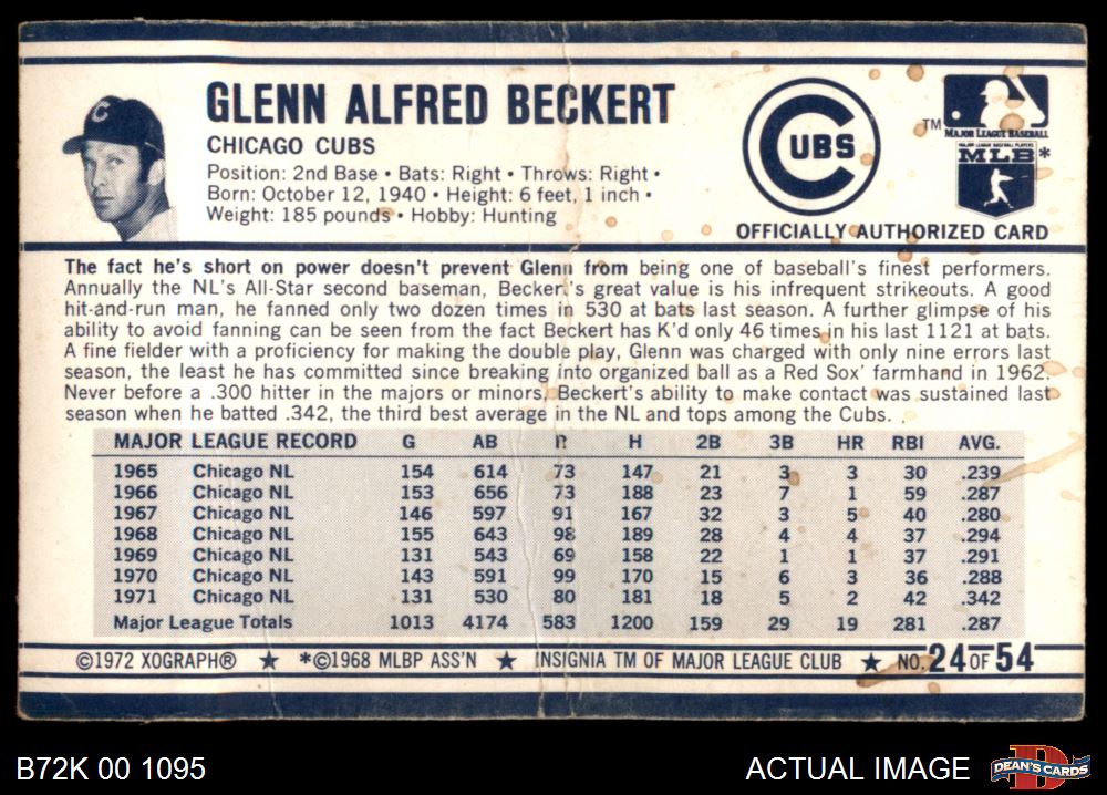 1972 Kellogg's #24 Glenn Beckert 2 - GOOD