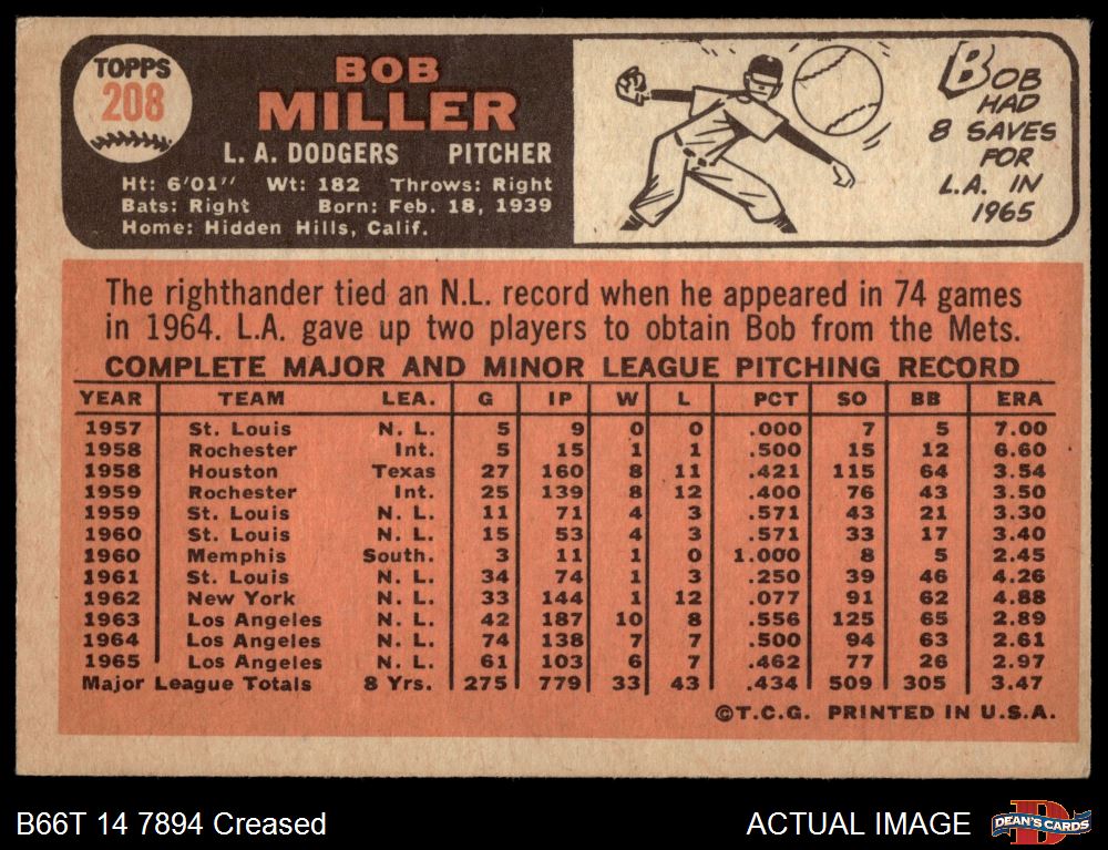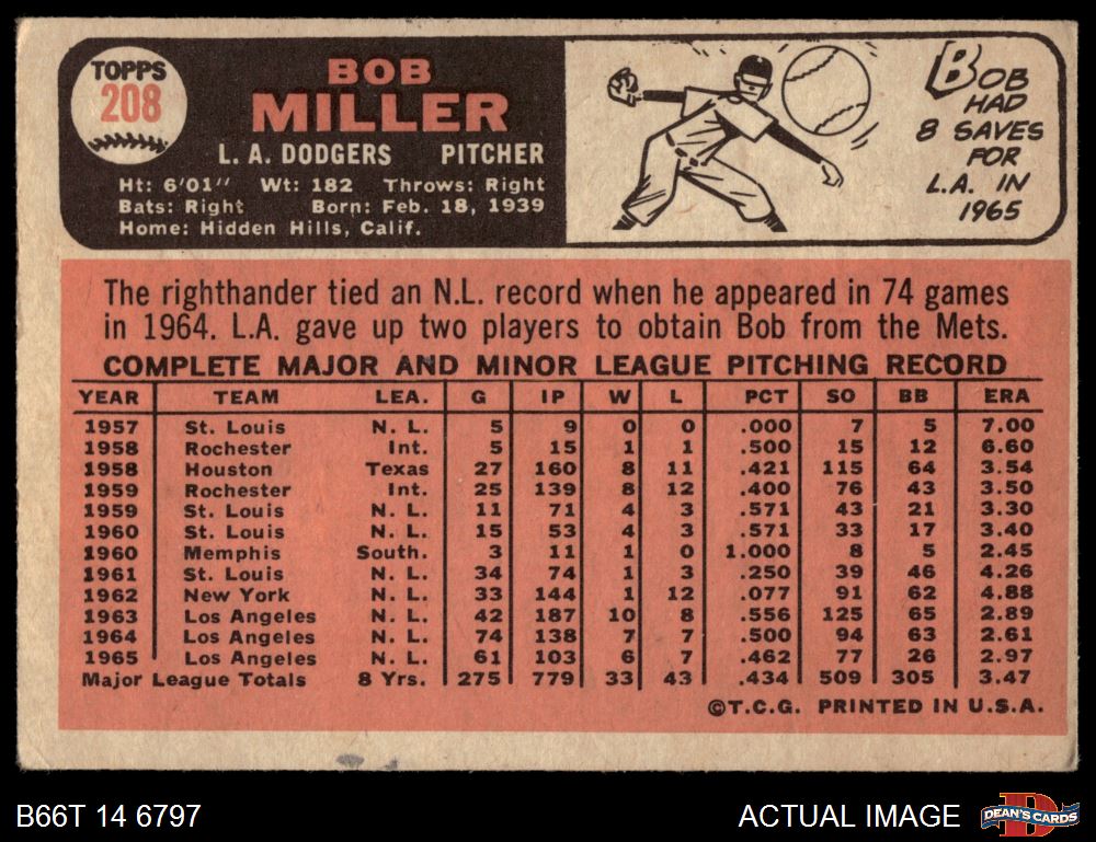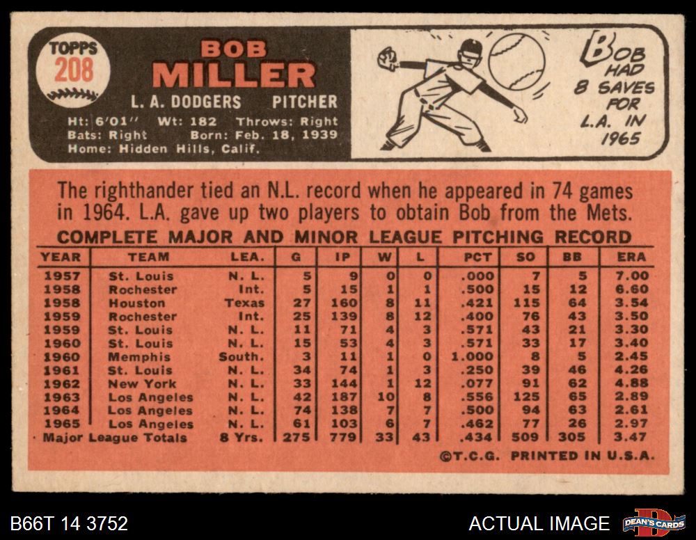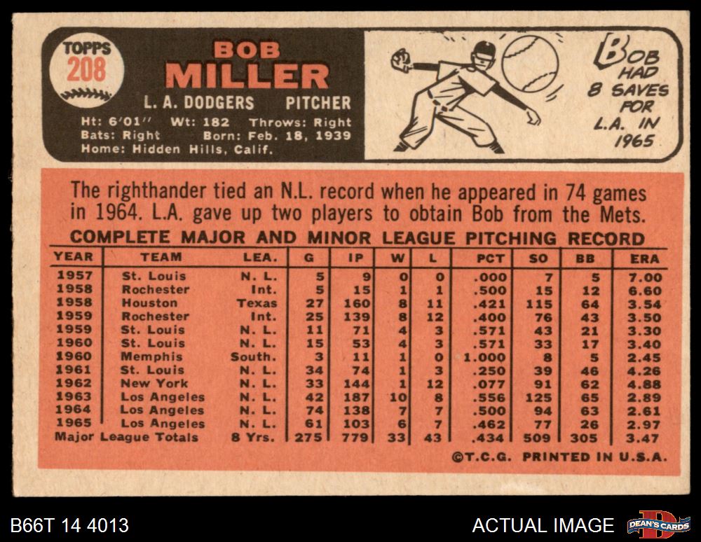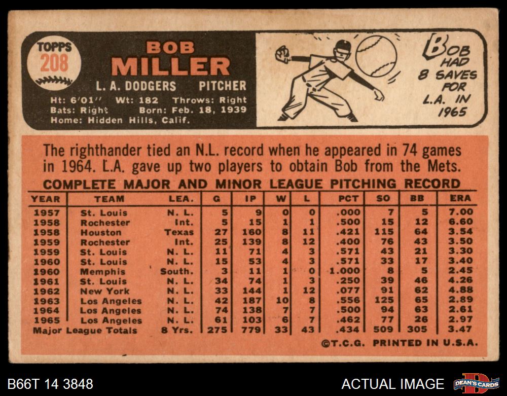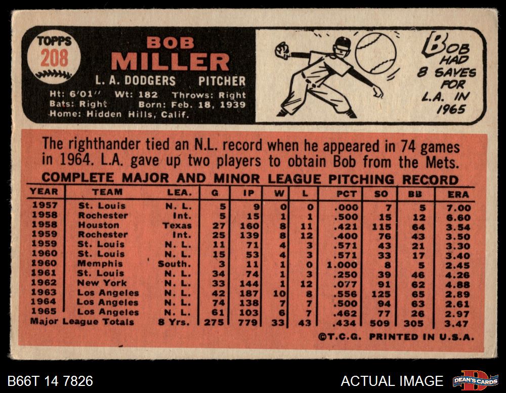 1966 Topps #208 Bob Miller