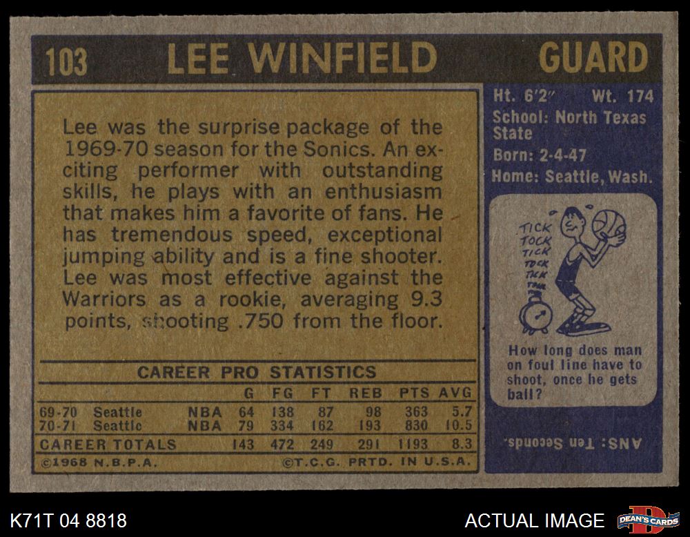 1971 Topps #103 Lee Winfield 8 - NM/MT