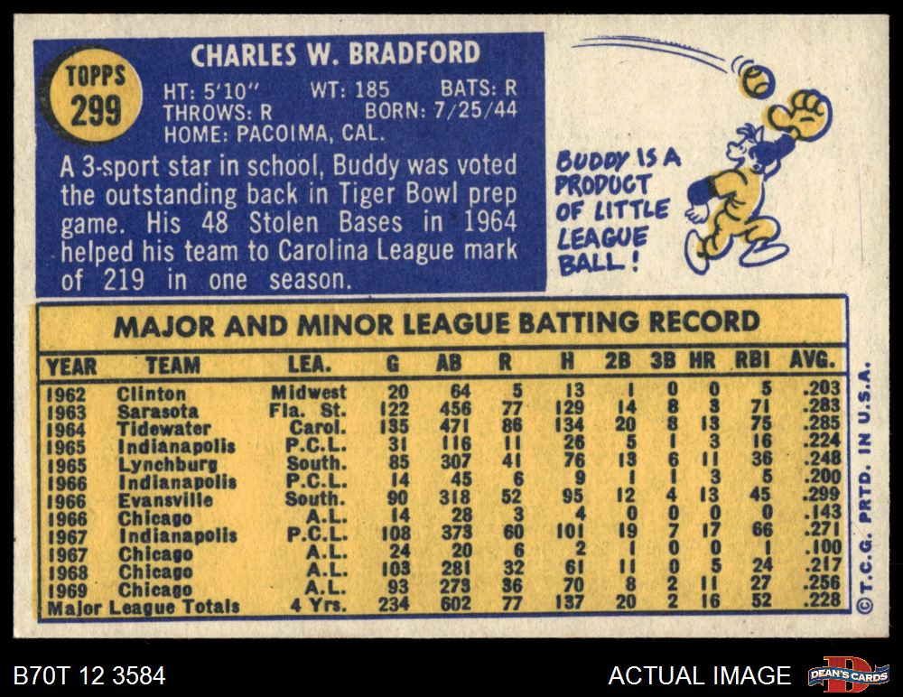 1970 Topps #299 Buddy Bradford 7 - NM